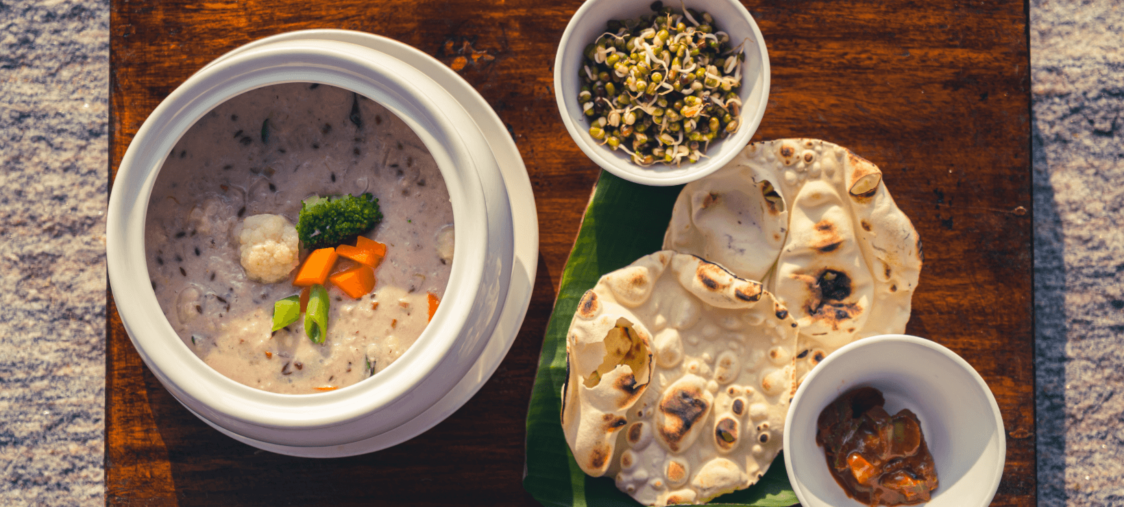 After the purification phase, your gut would be very sensitive and the diet should be extremely light in nature. We serve a lot of soups – especially Kanji – rice soup that is easy to digest.