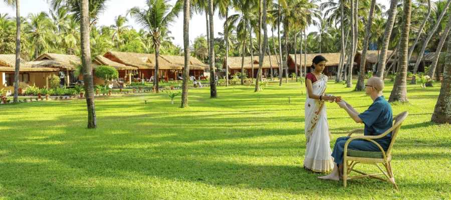 So würde ein typischer Tag im Sitaram Beach Retreat während Ihrer Panchakarma-Kur aussehen. Der Tagesablauf ist entspannt, so dass Sie Ihre Gewohnheiten und Schlafzyklen optimal anpassen und eine entspannte Heilerfahrung machen können. Zeit mit sich selbst und der Natur in Einsamkeit und Stille zu verbringen, gilt als Schlüsselfaktor für die Heilung und die Verbindung mit unserem Geist und Körper.